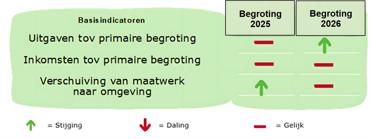 Voor de bouwsteen Financiën/control zijn de volgende indicatoren geformuleerd waarbij per indicator de verwachte trend is aangegeven: